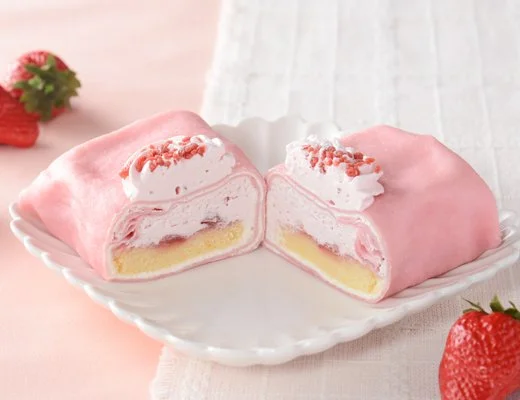 薄いいちご色のクレープ生地を開くと、スポンジ生地・いちごクリーム・いちごソース(いちごダイス入り)が層状に現れる断面は、まるでカフェのショートケーキのよう。食べる前の期待感を高めるビジュアルがSNS映えを加速させました。